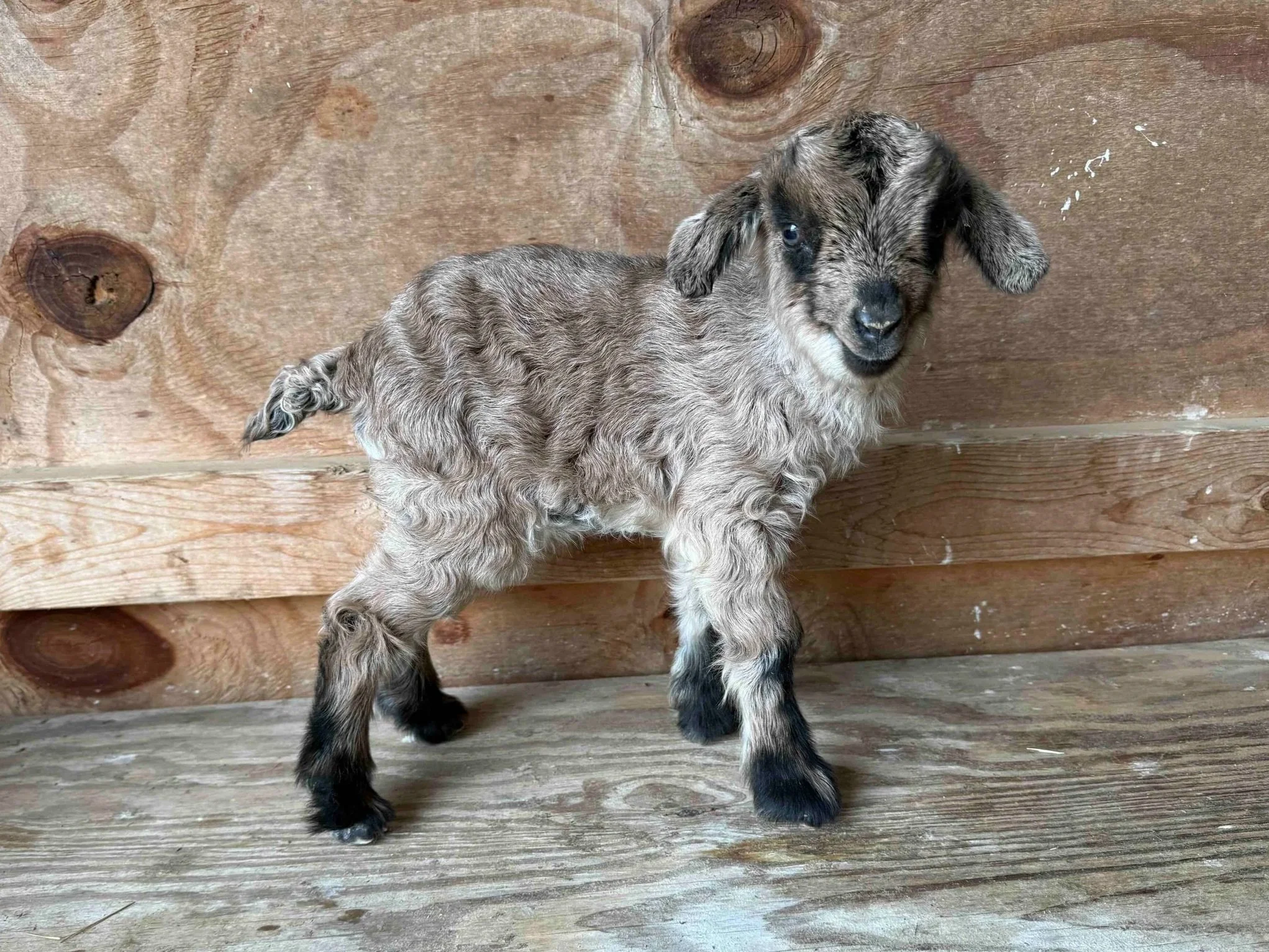 Twin to Sparkle, Darkman is out of Caney Fork Pygoras Stacy and Little Hawk Farm Remington. We expect Type B gray fleece like mom, who has tremendous coverage and volume. Laid back personality, and nice square build.